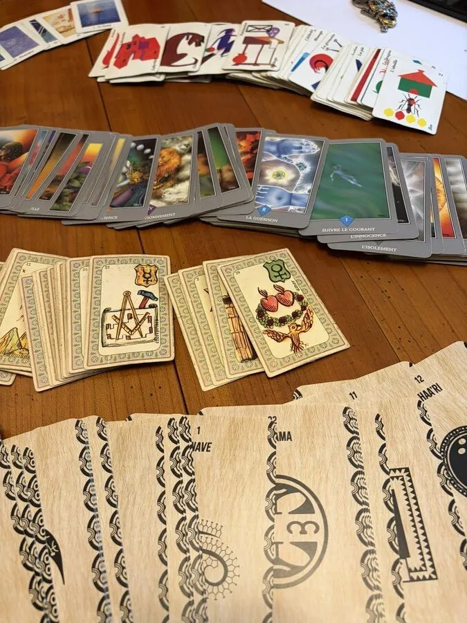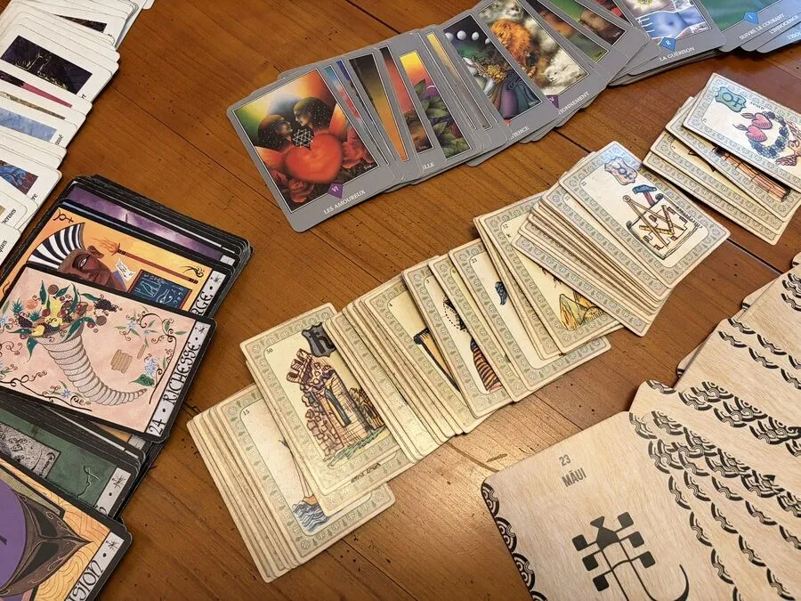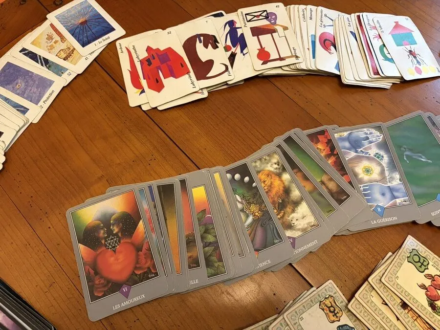 Chaque personne est différente. Donc, Rémi utilise plusieurs jeux de cartes. Le choix dépend de ce qu’il ressent et de la personne en face. Ainsi, la lecture gagne en finesse, sans surcharge.